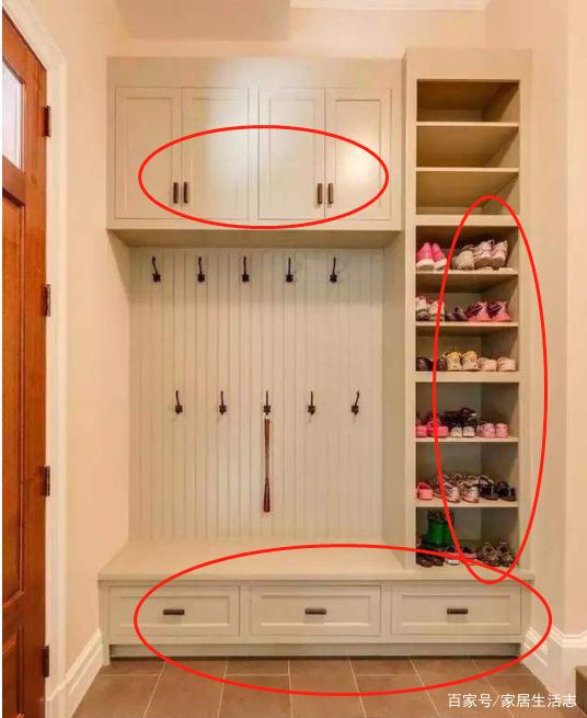 1、玄關的收納很重要,全家人的鞋子加在一起數(shù)量多,需要大的鞋柜才能裝得下,我們可以利用墻面空間全部打上柜子,這樣收納空間要比買的多,也更加實用。